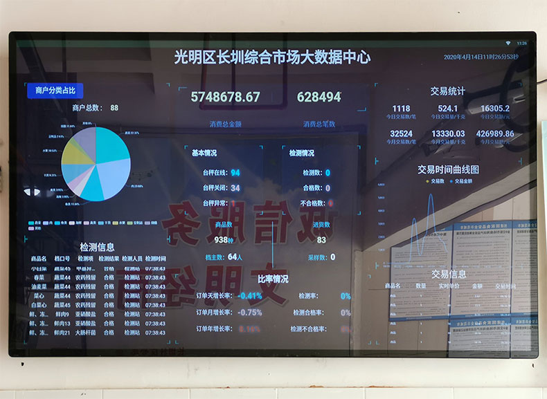 另外除了規(guī)模大、環(huán)境整潔,市場內(nèi)引進(jìn)一系列智慧化溯源設(shè)備,真正做到:“菜安全、無異味、價(jià)公道、計(jì)量準(zhǔn)、價(jià)公示、可追溯、智慧付、聯(lián)成網(wǎng)”。另外為了讓市民們可以放心買菜,農(nóng)貿(mào)市場采用了大數(shù)據(jù)分析技術(shù)。在市場服務(wù)臺上方的大屏幕上,所有食品的檢測和交數(shù)據(jù)都會實(shí)時(shí)顯示。讓居民們的“菜籃子”拎得越來越舒心。