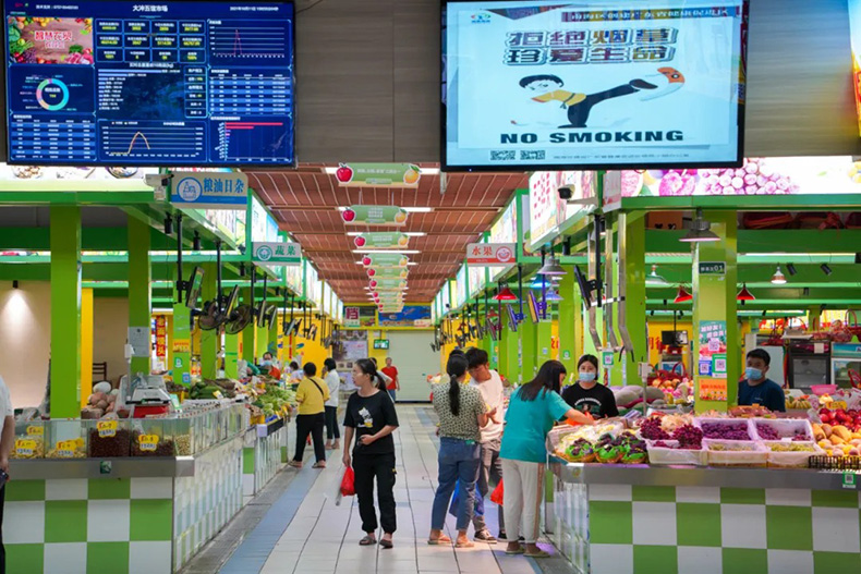農(nóng)貿市場的升級改造,不僅是給市場“換新貌”,更是守護市民“菜籃子”,保障“舌尖上的安全”的重要舉措。“智慧農(nóng)貿市場”創(chuàng)新設計理念,是按照高起點、高標準、高質量、高規(guī)格的要求,建設成為智慧高效、管理規(guī)范、舒適便民、安全可溯、物聯(lián)網(wǎng)+大數(shù)據(jù)時代新型智慧農(nóng)貿市場。