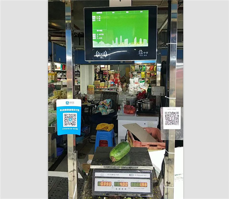 商家可以直接在稱上實現稱重、出票、打票、收款,不會出現短斤缺兩,可以實現微信、支付寶等零現金支付,受到商家、顧客的一致好評。
