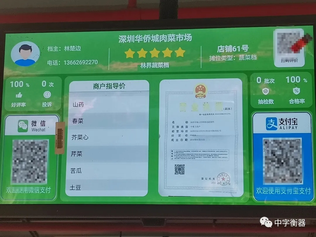 攤位擺放以及展示屏和中字物聯網溯源秤