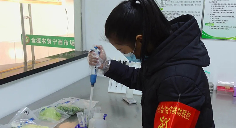 市場還配有食品安全檢測室,并安排專業(yè)市場人員對食材進(jìn)行日常抽檢。針對當(dāng)前疫情情況,市場加強(qiáng)對冷凍進(jìn)口食品等的檢測,同時對進(jìn)出市場的人員進(jìn)行體溫檢測,并要求佩戴口罩,以創(chuàng)造安全放心的市場環(huán)境。