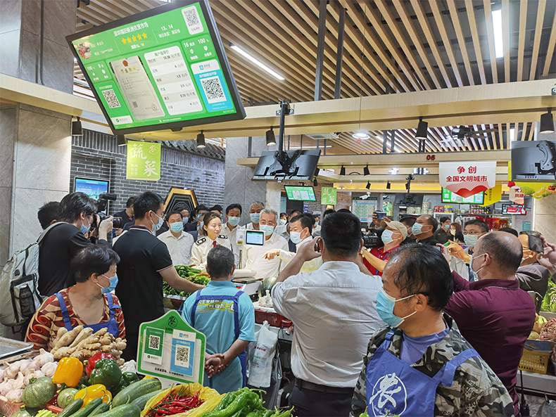 在信息公開方面也極為透明,全新的智慧農(nóng)貿(mào)市場將在醒目位置設(shè)置專門的屏幕,上面將市場信息和公告、每日銷售數(shù)據(jù)、農(nóng)殘檢測數(shù)據(jù)等進行公示。每個攤位也有相應(yīng)的商戶屏幕,展示商戶的營業(yè)執(zhí)照、業(yè)務(wù)信息、產(chǎn)品信息等,并有相應(yīng)的二維碼。購買農(nóng)產(chǎn)品后,您可以掃描代碼并表揚支持或投訴。真正實現(xiàn)了信息的公開透明,消費者可以放心購買和食用。