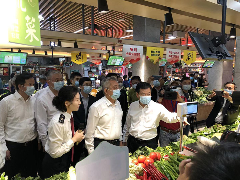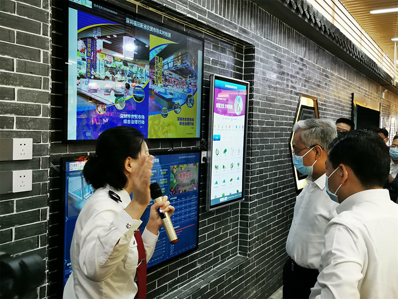 3月18日一早,位于深圳福田區(qū)的新洲農(nóng)貿(mào)市場,就迎來了一批特殊的客人。陳良賢副省長率領(lǐng)一支幾十人的隊伍,視察了由中字智慧農(nóng)貿(mào)部署的新洲智慧肉菜市場。