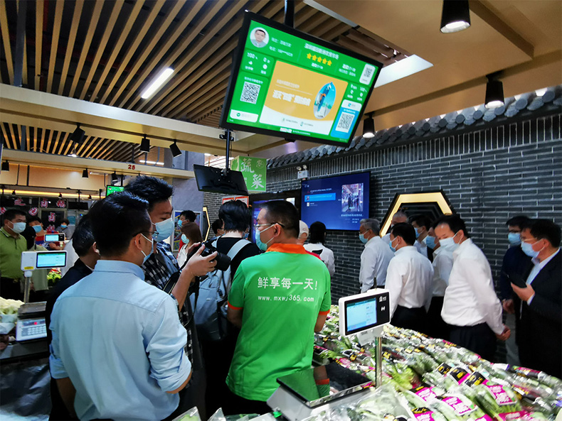 相關(guān)領(lǐng)導現(xiàn)場視察了中字智慧溯源系統(tǒng)的市場食品安全檢測、大數(shù)據(jù)公示屏、市場信息公示屏。同時體驗了智慧農(nóng)貿(mào)的售賣結(jié)算流程,了解了如何通過溯源碼查詢菜品信息,實現(xiàn)食品安全全程可追溯。